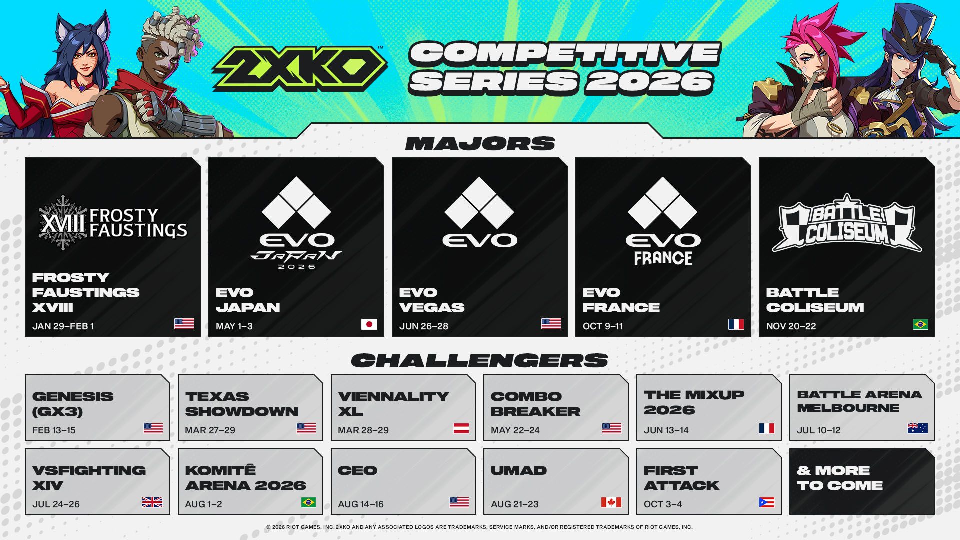 Here’s the full competitive schedule for 2XKO in 2026.