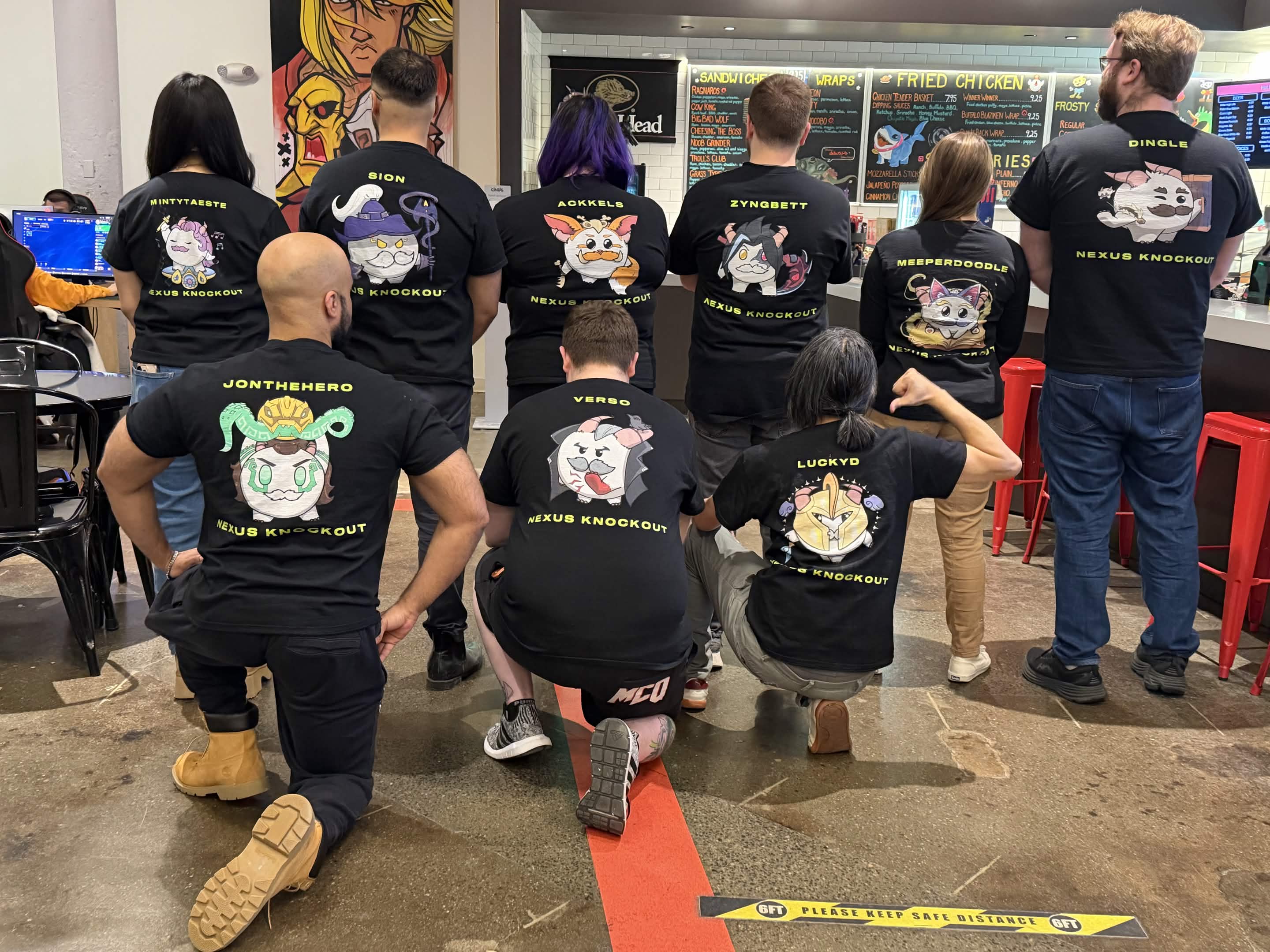 We had to include this bonus photo. Meeperdoodle, one of NXKO’s organizers, designed custom shirts for the whole NXKO crew, with poro-fied versions of their favorite League of Legends/2XKO champs.