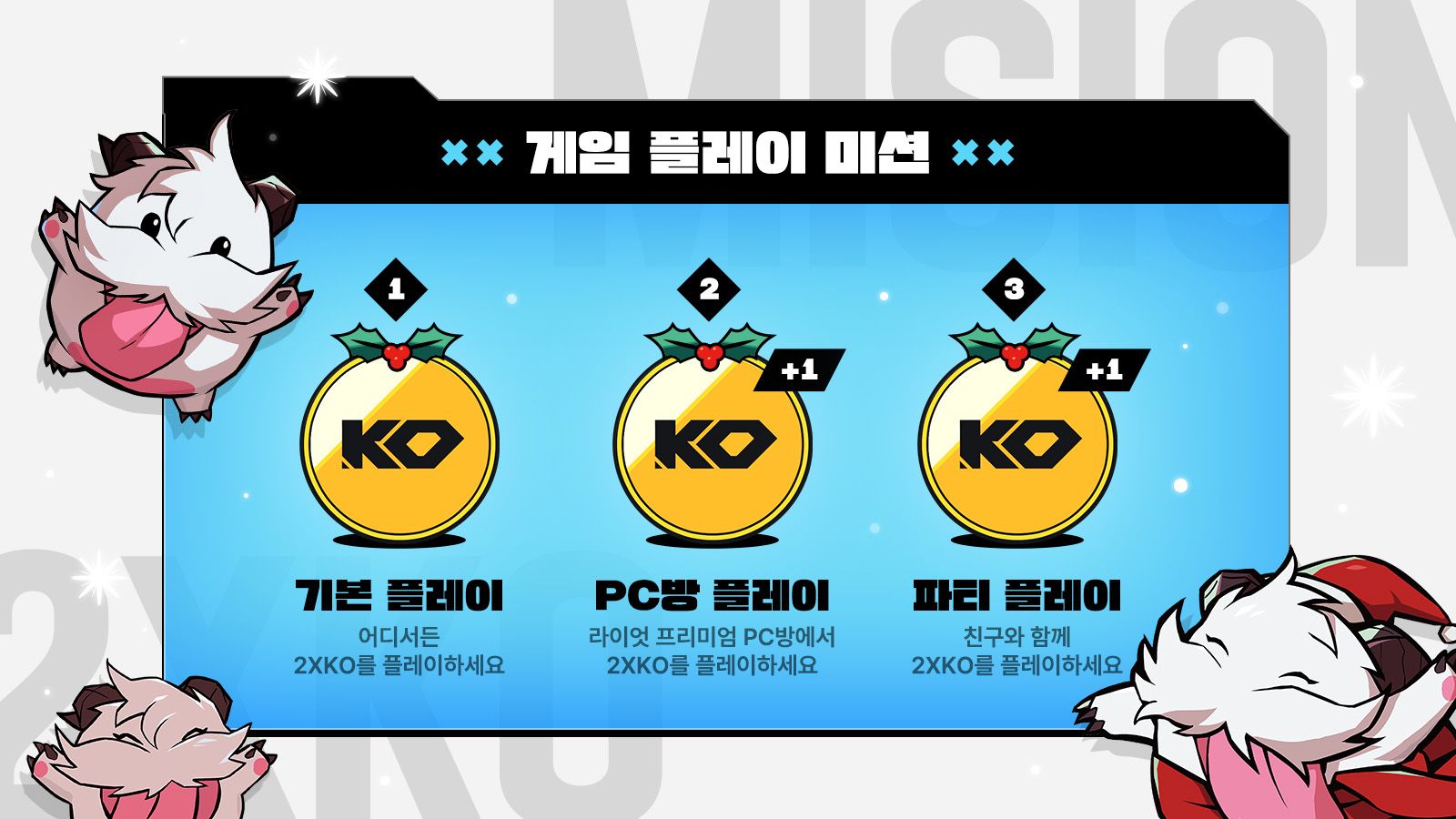 2XKO가 특별한 경품과 함께 다시 찾아왔습니다. 플레이만 해도 KO 토큰이 쌓이며, PC방에서 플레이하거나 친구와 함께 플레이하면 즐거움도 보상도 더 많이 얻을 수 있습니다. KO 토큰을 차곡차곡 쌓아서, 더 높은 티어의 보상에 응모해 보세요.