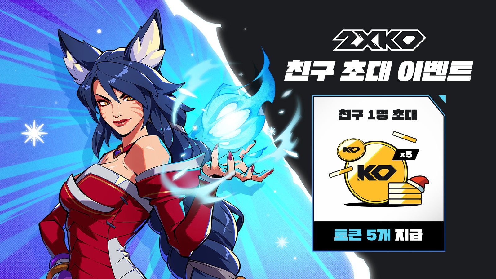 친구가 2XKO 가입 시 내 초대 코드를 입력하면, 친구 1명당 KO 토큰 5개가 지급됩니다.