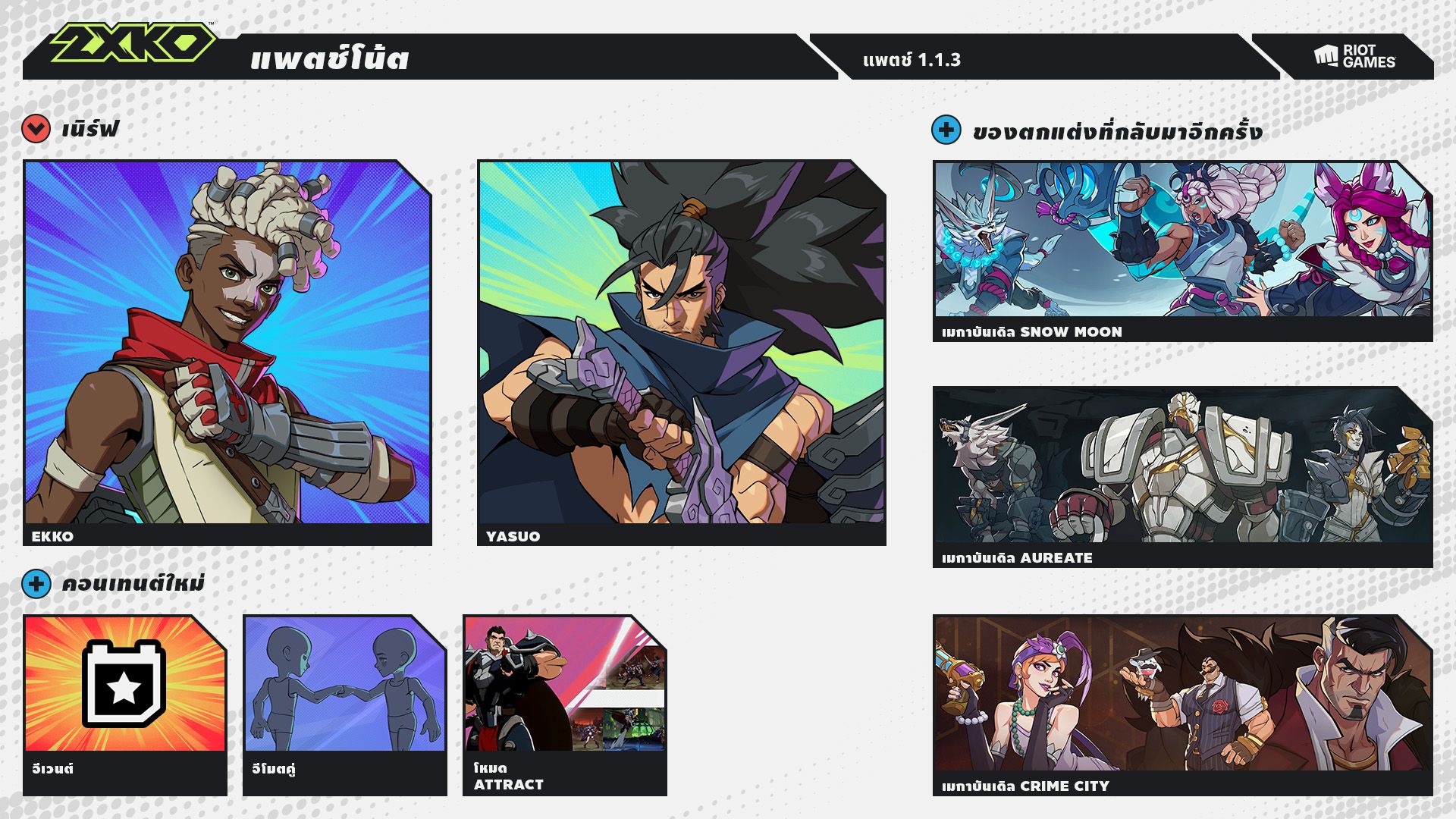 แพตช์โน้ต 2XKO: 1.1.3 (10 มีนาคม 2026)