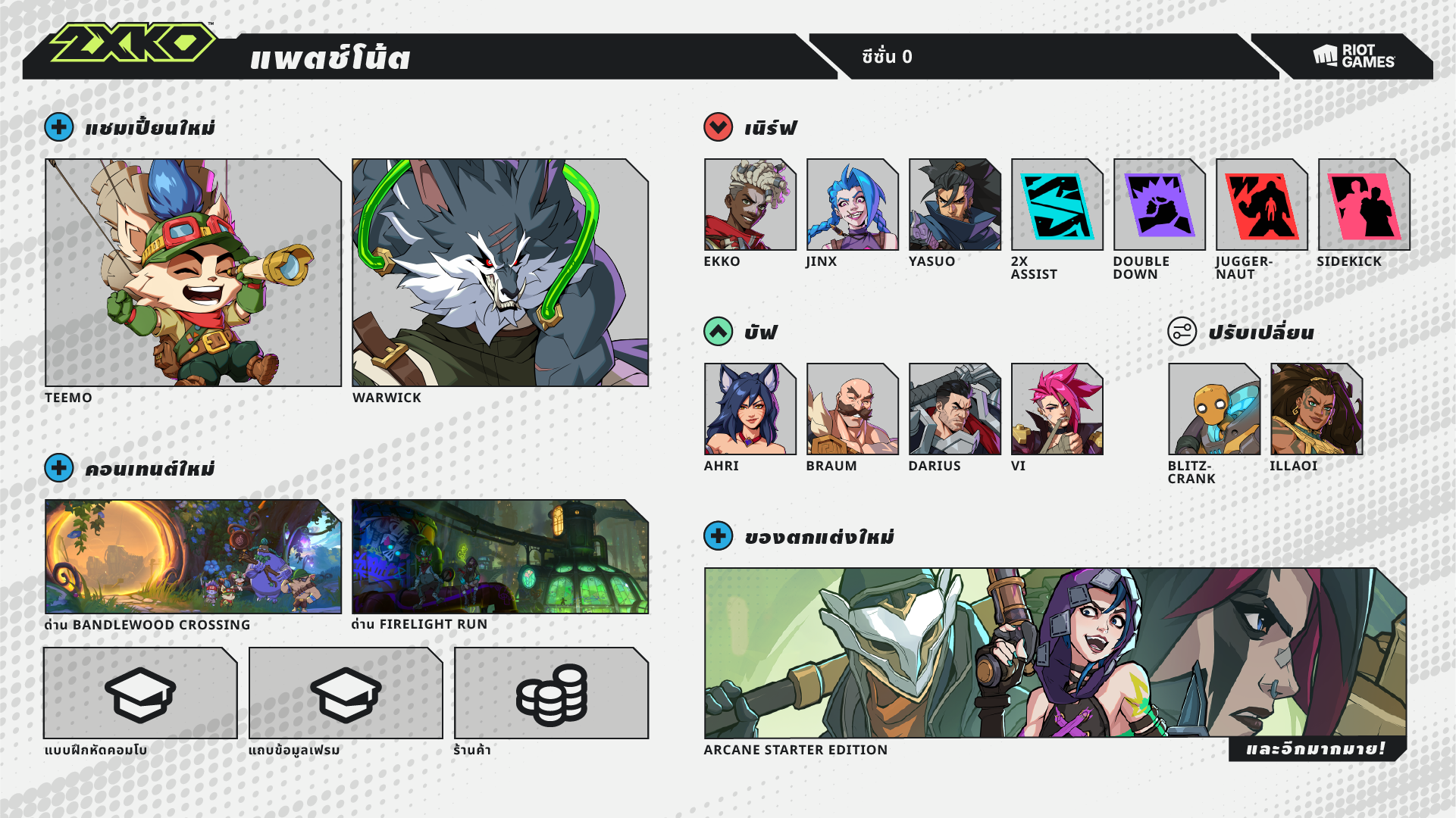 - เพิ่มส่วนข่าวสารไปยังหน้าจอหลักของไคลเอนต์ 2XKO ที่แสดงโปรโมชันปัจจุบันในร้านค้า